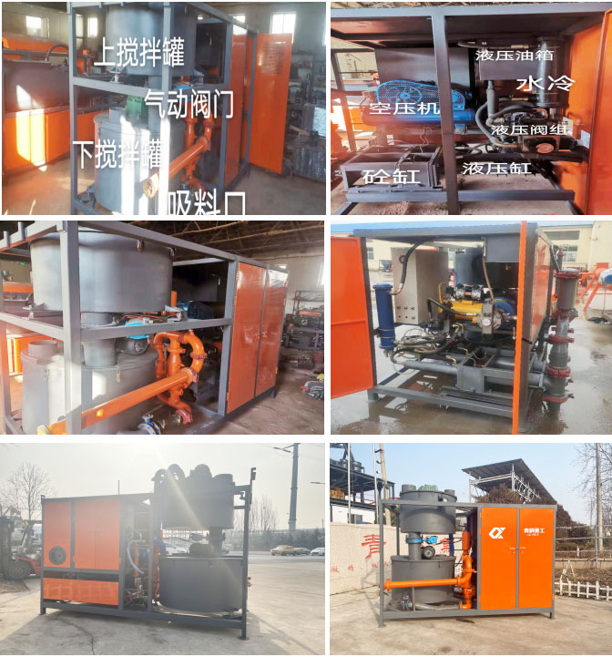 發(fā)泡系統(tǒng)采用大排量空壓機和發(fā)泡劑計量泵,通過PLC控制系統(tǒng)精確控制發(fā)泡劑和水的混合比例,在發(fā)泡倉中與空氣充分混合,從而產(chǎn)生符合密度要求的氣泡群。