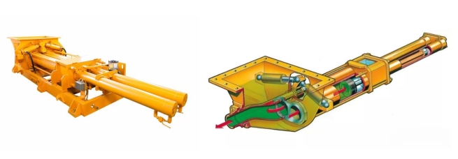 泵送物料時(shí),在泵送油缸作用下,活塞向前推進(jìn),將砼缸中的物料推入分配閥并進(jìn)入出料口(此時(shí),分配閥與砼缸接通),與此同時(shí)活塞向后運(yùn)行,把料斗中的物料料吸入缸。當(dāng)活塞后退至行程終端時(shí),泵送油缸上的液控單向閥被打開,控制油從液控單向閥流向液控二位四通閥使該閥換向。擺動(dòng)油缸,使分配閥與砼缸連通,砼缸與料斗連通,此時(shí)系統(tǒng)的高壓油經(jīng)擺動(dòng)油缸使二位四通閥換向,因而活塞后退,并從料斗中吸入砼缸,活塞前進(jìn),將砼缸中的物料進(jìn)到S閥及輸送管路中,如此循環(huán)。